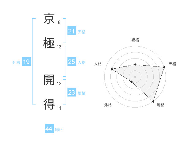 京極 開得さんの総格は44画の2点!