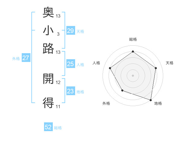 奥小路 開得さんの総格は52画の4点!