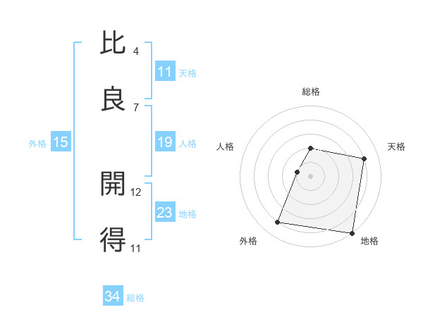 比良 開得さんの天格は11画の4点!