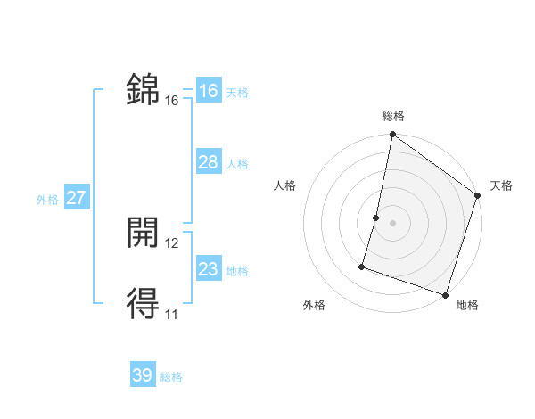 錦 開得さんの外格は27画の3点!