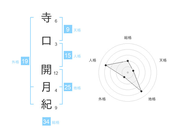 寺口 開月紀さんの総格は34画の2点!