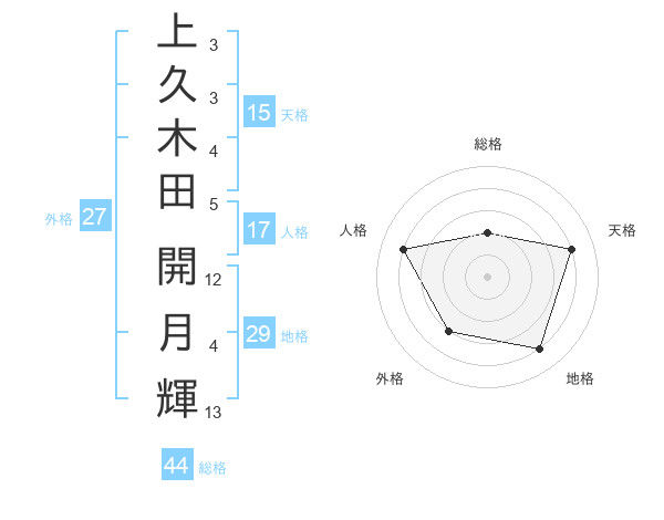 上久木田 開月輝さんの総格は44画の2点!