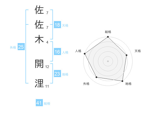 佐佐木 開浬さんの外格は25画の4点!