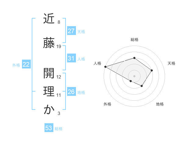 近藤 開理かさんを姓名の画数から五運を鑑定