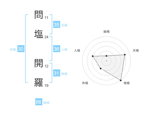 問塩 開羅さんを姓名の画数から五運を鑑定