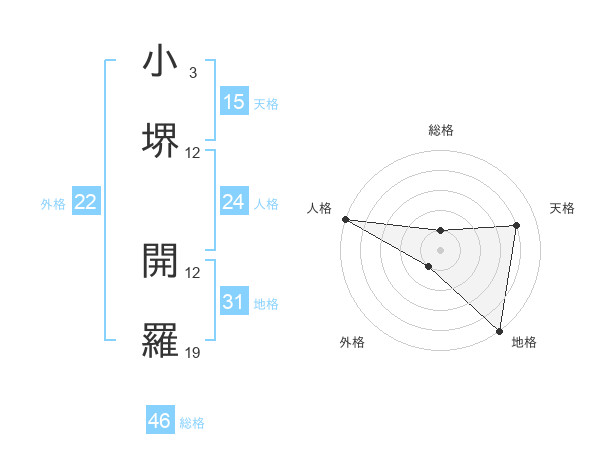 小堺 開羅さんの総格は46画の1点!