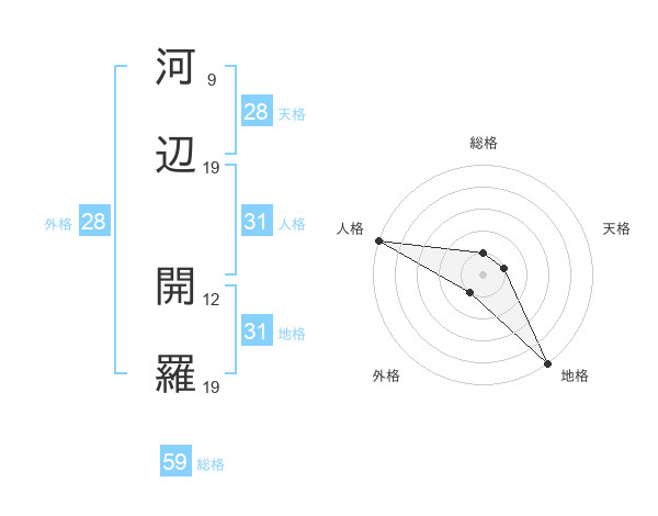 河辺 開羅さんを姓名の画数から五運を鑑定