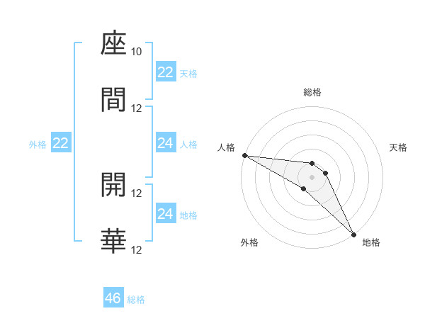 座間 開華さんの総格は46画の1点!