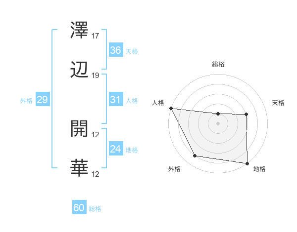 澤辺 開華さんの総格は60画の1点!