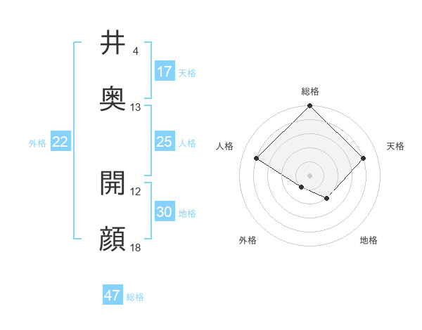 井奥 開顔さんを姓名の画数から五運を鑑定