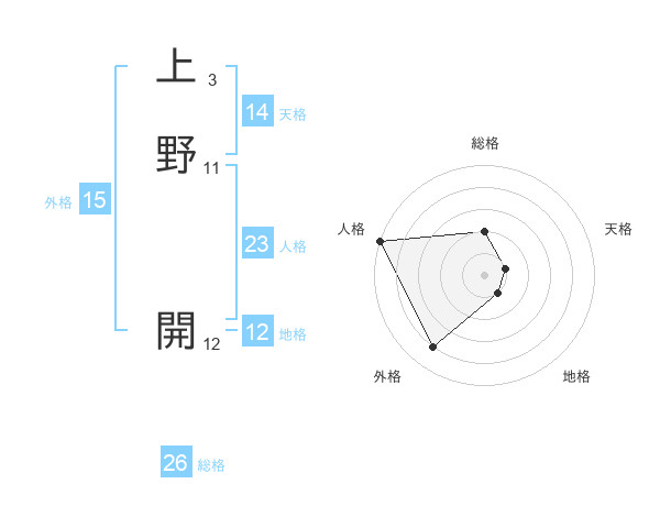 上野 開さんの総格は26画の2点!