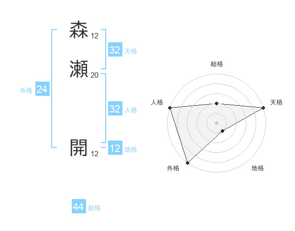 森瀬 開さんの総格は44画の2点!