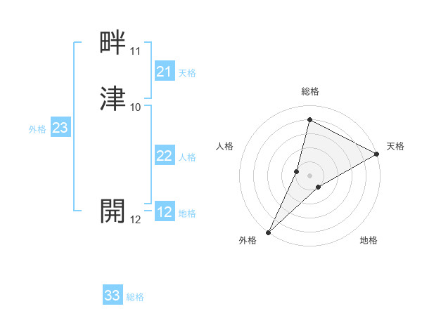 畔津 開さんの天格は21画の5点!