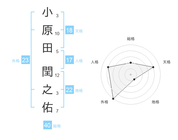 小原田 閏之佑さんを姓名の画数から五運を鑑定