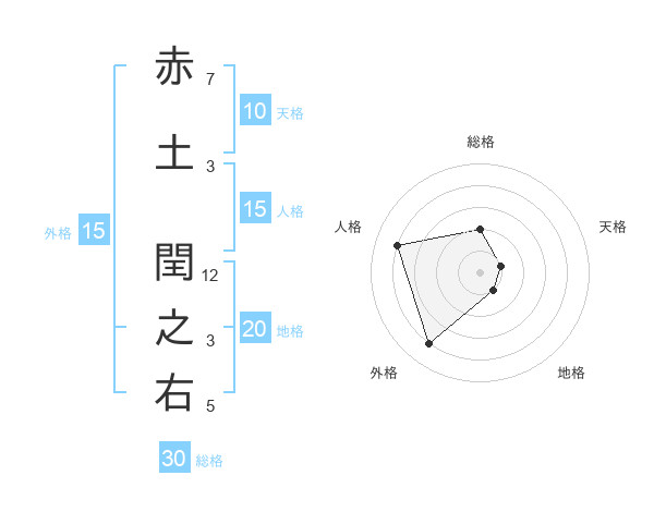 赤土 閏之右さんの外格は15画の4点!