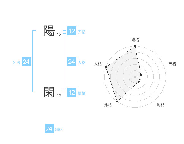 陽 閑さんの外格は24画の5点!