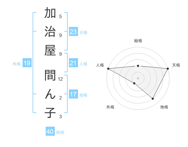加治屋 間ん子さんを姓名の画数から五運を鑑定