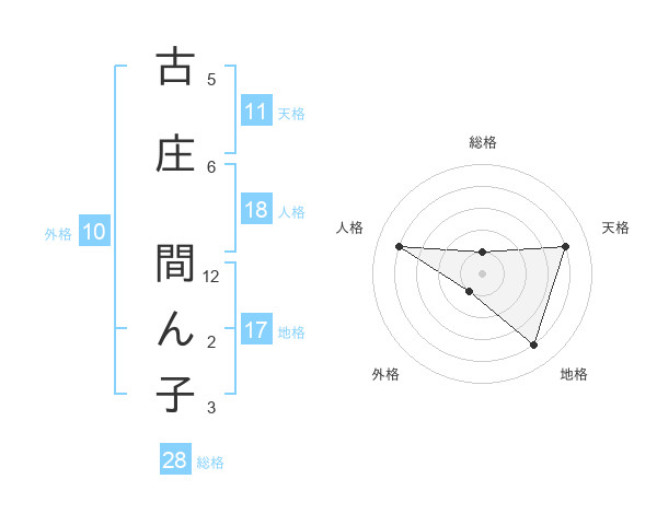 古庄 間ん子さんを姓名の画数から五運を鑑定