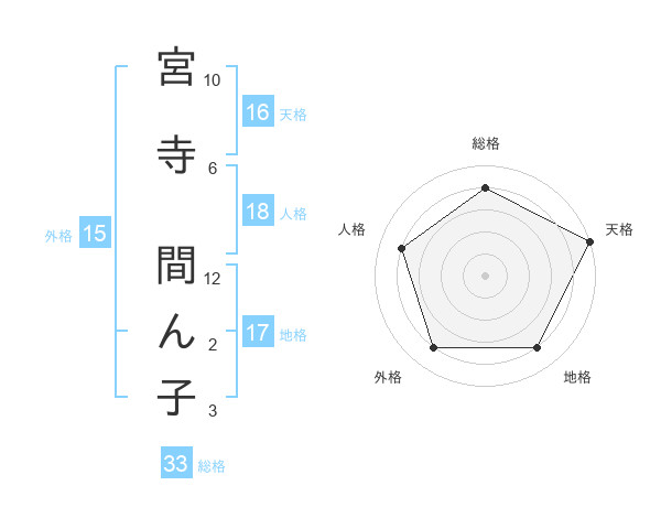 宮寺 間ん子さんを姓名の画数から五運を鑑定