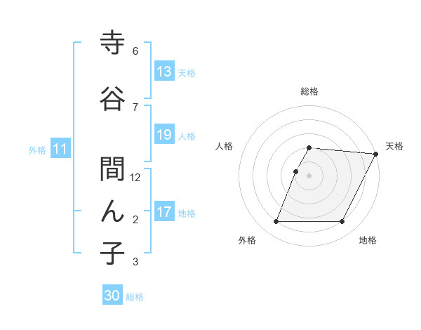 寺谷 間ん子さんの総格は30画の2点!