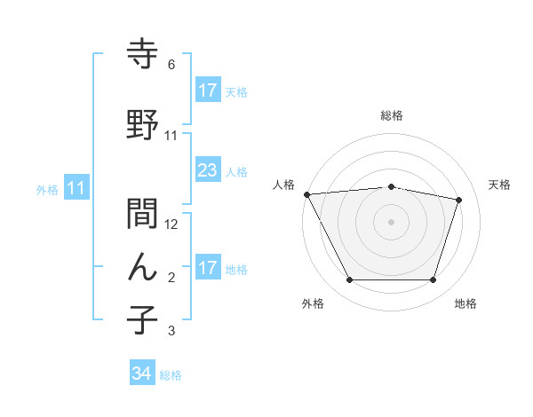 寺野 間ん子さんの外格は11画の4点!