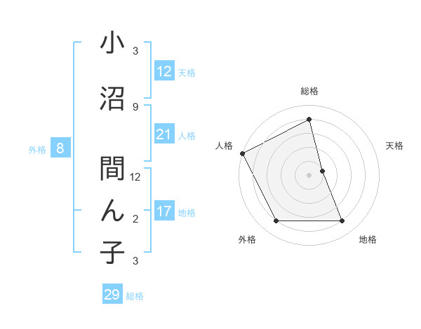小沼 間ん子さんを姓名の画数から五運を鑑定