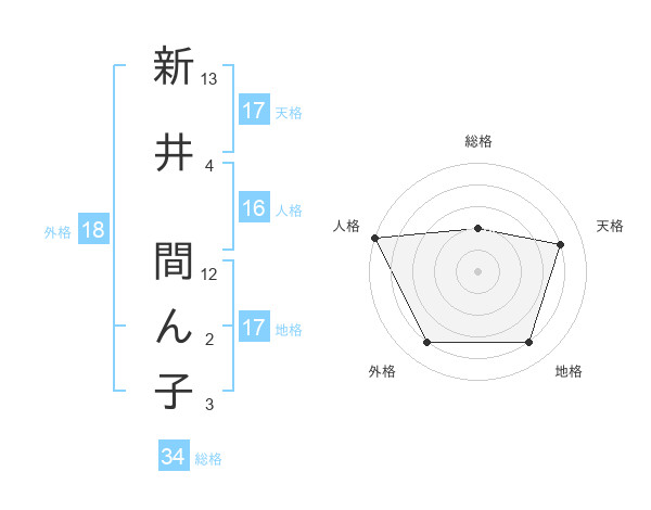 新井 間ん子さんの天格は17画の4点!