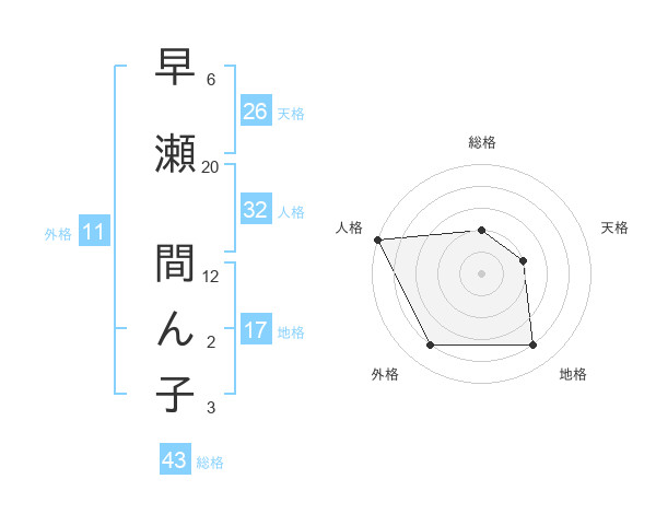 早瀬 間ん子さんを姓名の画数から五運を鑑定