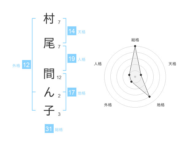 村尾 間ん子さんを姓名の画数から五運を鑑定