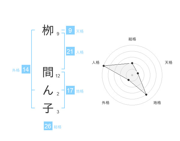 栁 間ん子さんの総格は26画の2点!