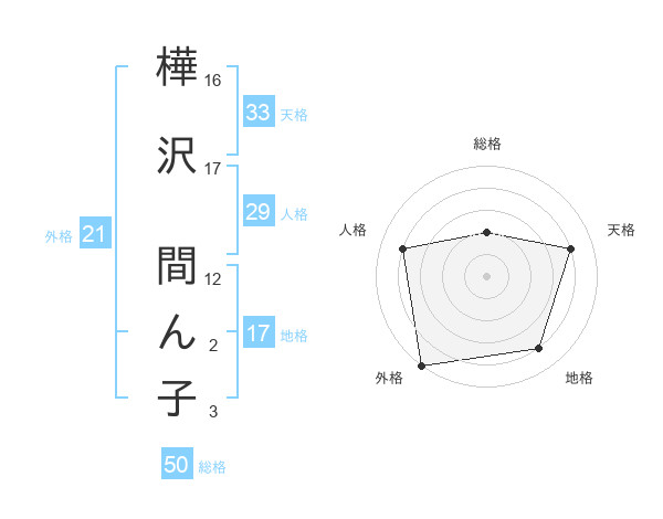 樺沢 間ん子さんの総格は50画の2点!