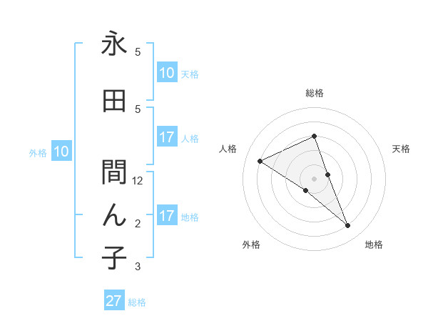 永田 間ん子さんの地格は17画の4点!