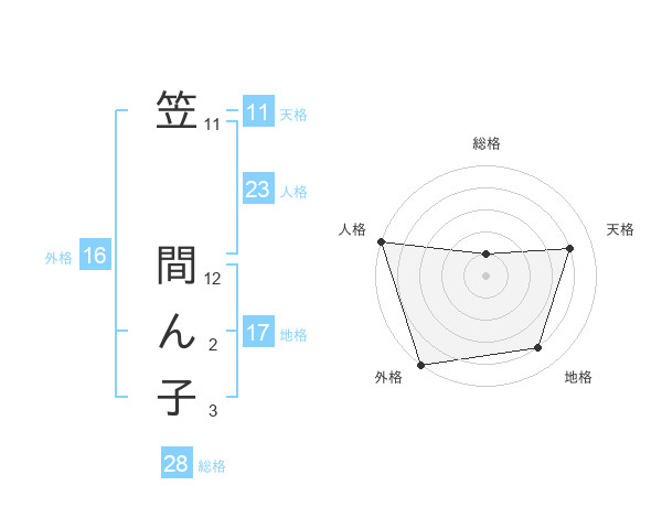笠 間ん子さんを姓名の画数から五運を鑑定