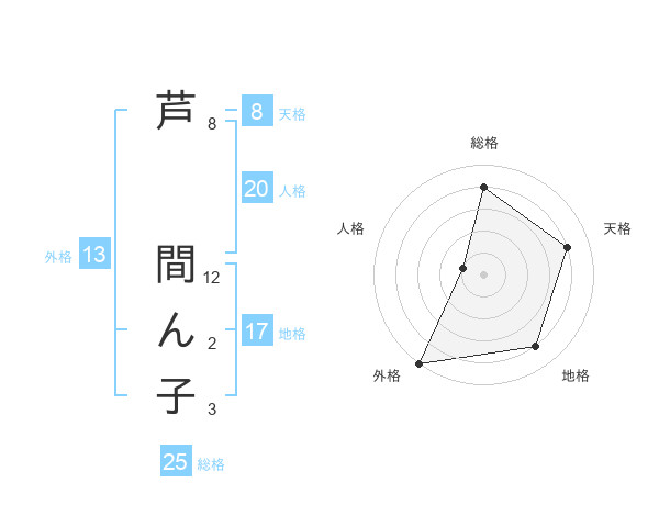 芦 間ん子さんを姓名の画数から五運を鑑定