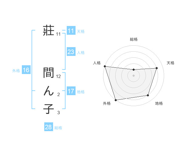 莊 間ん子さんの外格は16画の5点!