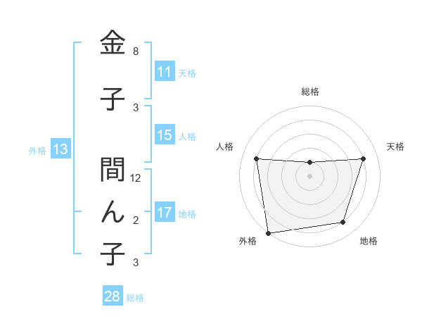 金子 間ん子さんを姓名の画数から五運を鑑定