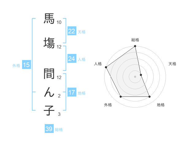 馬塲 間ん子さんを姓名の画数から五運を鑑定