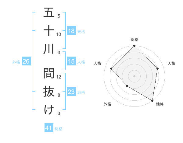 五十川 間抜けさんを姓名の画数から五運を鑑定