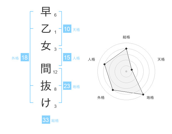 早乙女 間抜けさんを姓名の画数から五運を鑑定