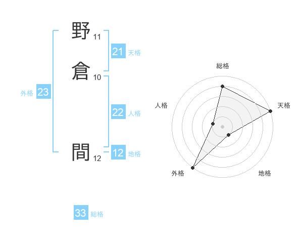 野倉 間さんの外格は23画の5点!