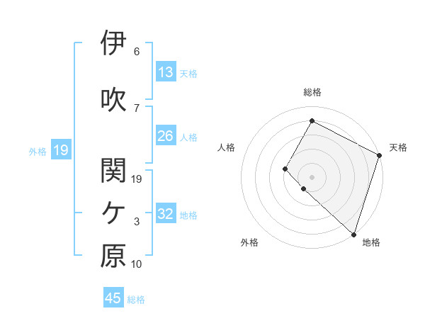 伊吹 関ケ原さんを姓名の画数から五運を鑑定