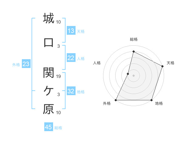 城口 関ケ原さんを姓名の画数から五運を鑑定
