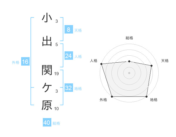小出 関ケ原さんの地格は32画の5点!
