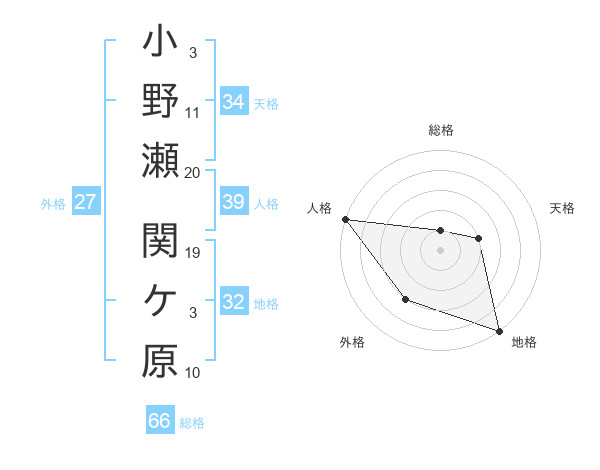小野瀬 関ケ原さんの総格は66画の1点!