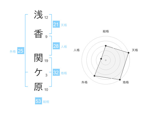 浅香 関ケ原さんを姓名の画数から五運を鑑定