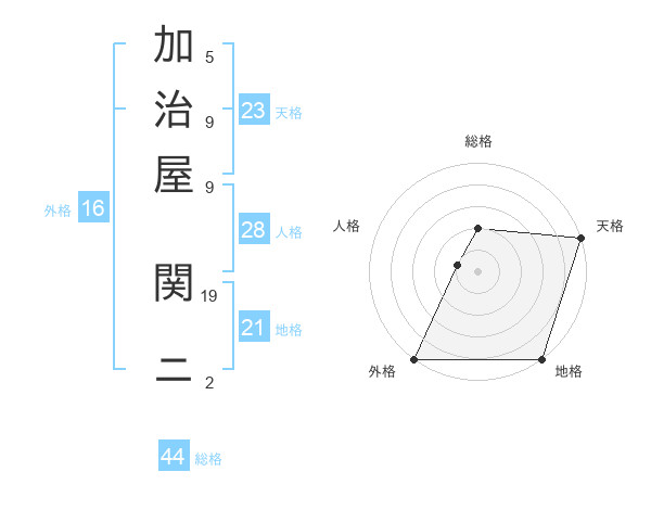 加治屋 関ニさんの総格は44画の2点!