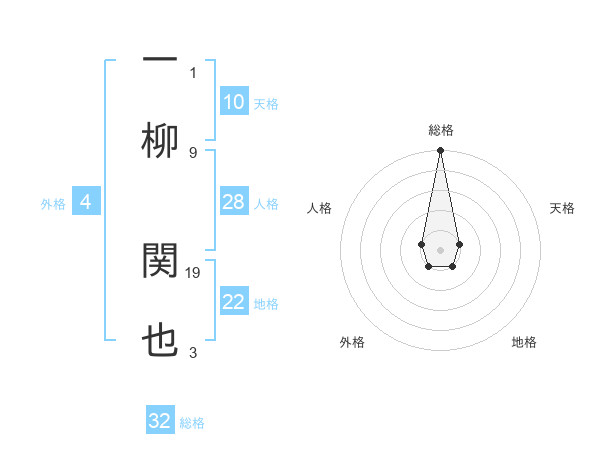 一柳 関也さんの総格は32画の5点!