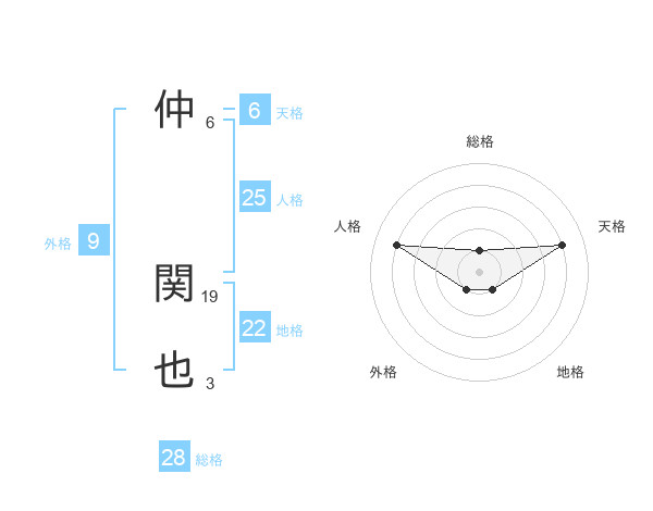 仲 関也さんの総格は28画の1点!