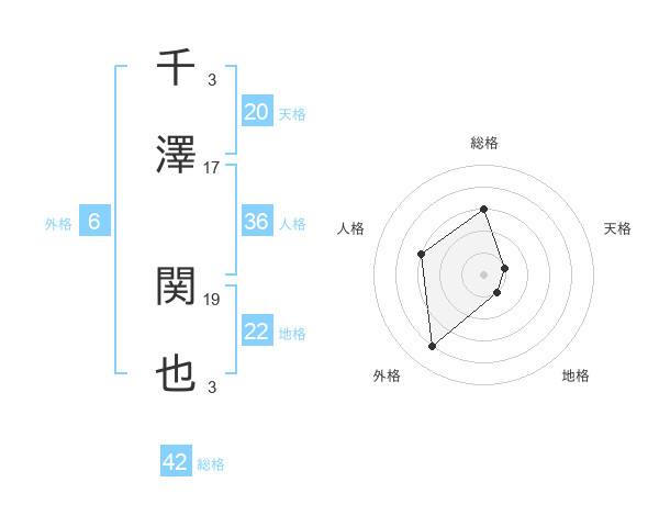 千澤 関也さんの天格は20画の1点!