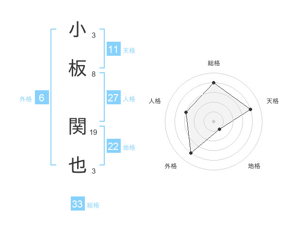 小板 関也さんの総格は33画の4点!